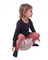 Oproti dámských legínům šijeme ty dětské z "tričkoviny", tedy slabšího úpletu. Není sice tak hodně odolný jako silnější úplet, ze kterého šijeme dámské legíny, ale dětem je příjemnější, je lehčí a tedy i prodyšnější. Tento materiál pro děti využijete celoročně.